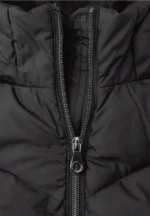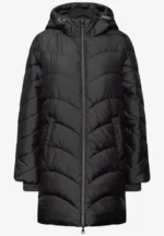 Die Midi Steppjacke von Street One für Damen bringt modische Leichtigkeit in deine Garderobe. Ein welliges Steppmuster, eine Kapuze mit Tunnelzug und seitliche Taschen mit Knöpfen sorgen für stilvolle Details. Der gerundete Saum rundet das Design feminin und modern ab – perfekt für kühle Tage.