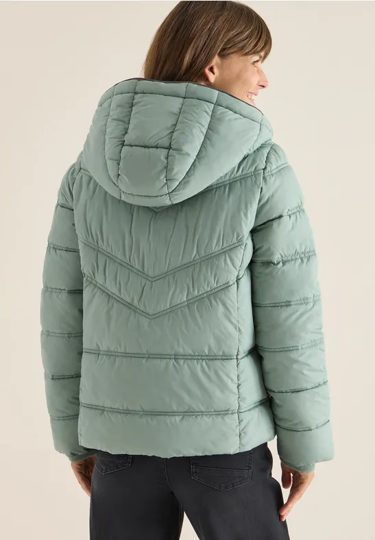 Diese Steppjacke von CECIL für Damen vereint funktionales Design mit sportivem Stil. Reflektierende Details, eine angesetzte Kapuze mit Tunnelzug sowie ein Stehkragen bieten Schutz bei Wind und Wetter. Eingesetzte Bündchen und wärmender Fleece in der Innentasche machen sie zum perfekten Begleiter für kalte Tage.